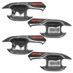 ถ้วยกันรอย เบ้ารองมือเปิด เบ้าปีก โลโก้สีแดง "RAPTOR" 4 ประตู 4 ชิ้น สีเครฟล่าดำ สำหรับ Ford Raptor Ranger XLT Wildtrak 4x2 4x4 ปี 2022-2023