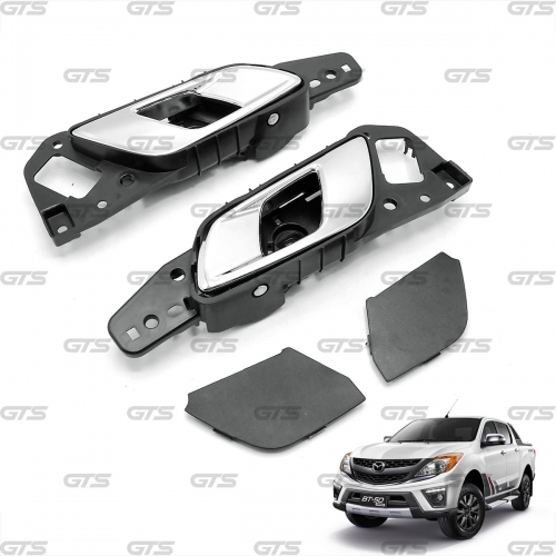 ชุด มือดึง ด้านใน มือเปิดในประตู รุ่นมีปุ่มล็อคประตู ข้างซ้าย+ขวา 2 ชิ้น สีเทา,โครเมี่ยม สำหรับ Mazda BT-50 Pro ปี 2012-2019,Ford Ranger T6 ปี 2012-2021